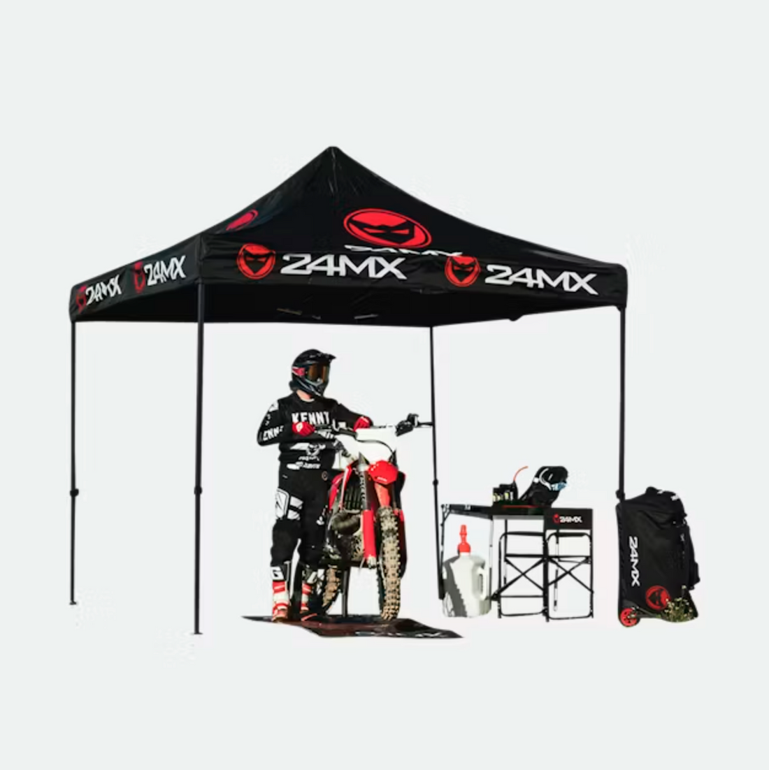 Easy-Up Rennzelt mit Wänden 24MX Schwarz + All-in-One Gearbag 150L 24MX